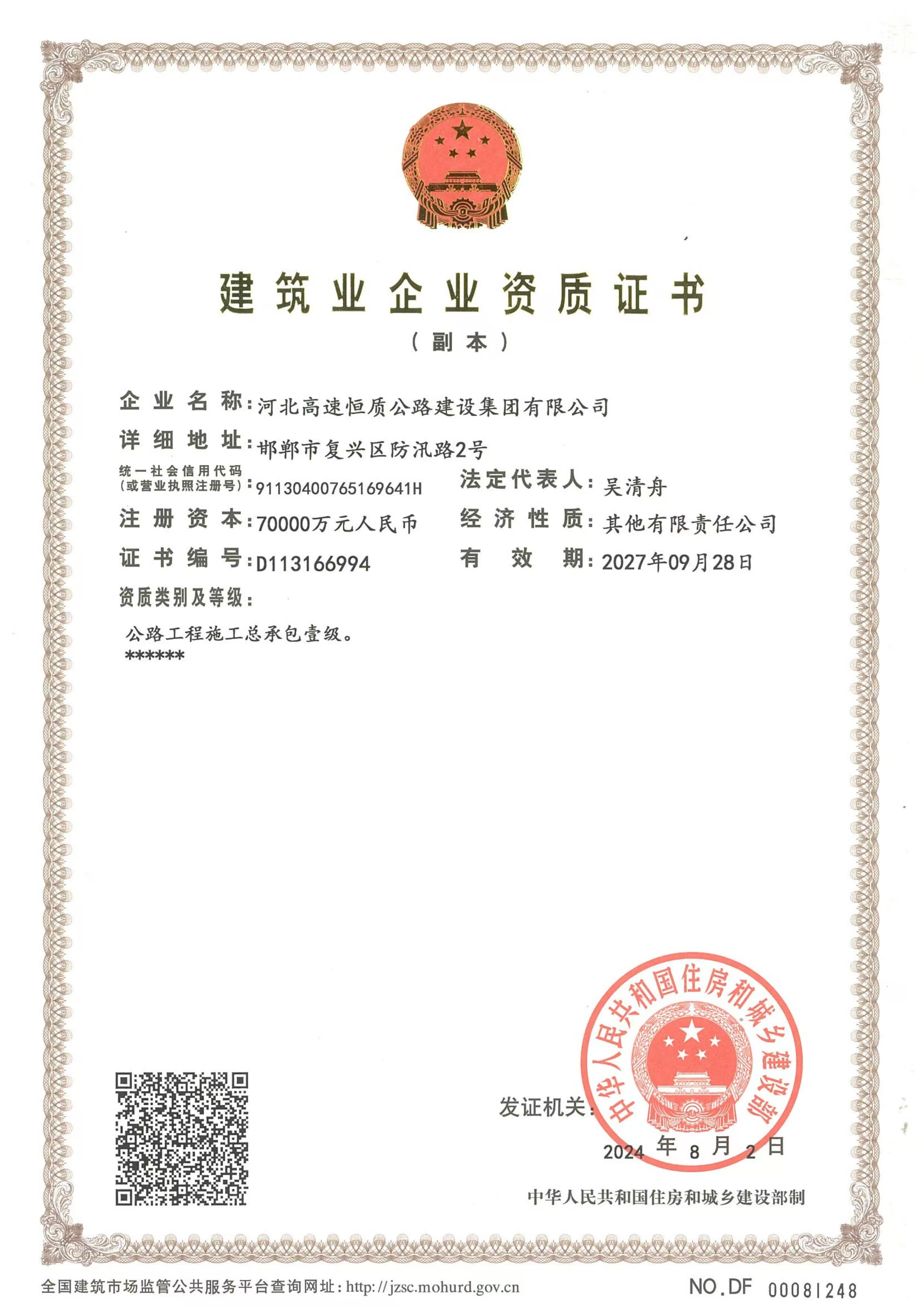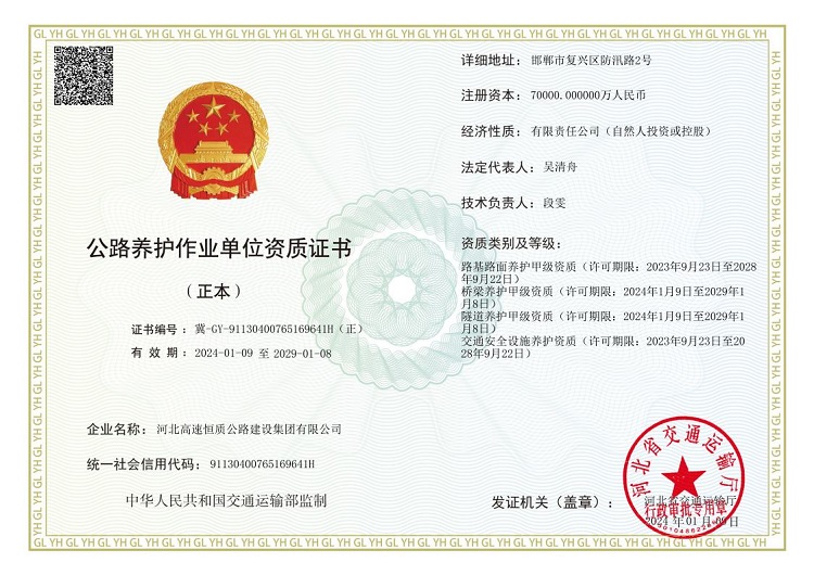 河北高速恒質(zhì)公路建設(shè)集團有限公司始建于2004年,前身是邯鄲市恒質(zhì)公路建設(shè)集團有限公司。2024年7月成為河北高速公路集團有限公司二級子公司,現(xiàn)有職工500余人,下轄18家子公司13個分公司,參股公司3家 ,注冊資本7億元,是一家集公路工程施工、路用材料研發(fā)生產(chǎn)、試驗檢測、瀝青貿(mào)易、公鐵物流于一體的多元化、綜合性單位,國家級高新技術(shù)企業(yè),河北省專精特新中小企業(yè),河北省首家瀝青拌合環(huán)保引領(lǐng)性企業(yè)。公司擁有公路工程總承包壹級、公路交通工程(公路安全設(shè)施)專業(yè)承包壹級、機電工程施工總承包貳級、電力工程施工總承包貳級、市政公用工程施工總承包貳級、建筑工...